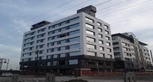 A hotel Project by BRILLIANT ESTATES LTD. 12000 Sft ACP Cladding with 12mm Glass Facade.