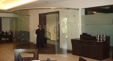 A Party Space by BAROT HOTELS PVT. LTD. External 12mm Glass Glazing with Large size of Glass panels & Internal partition work.